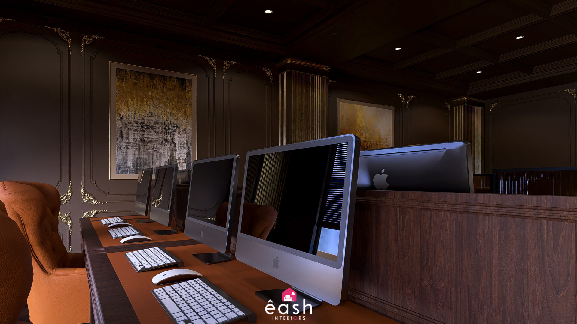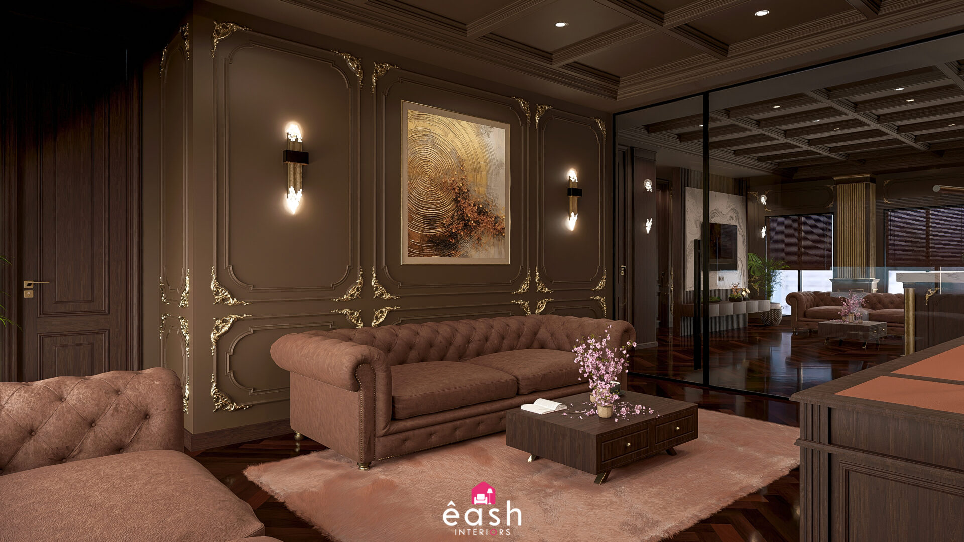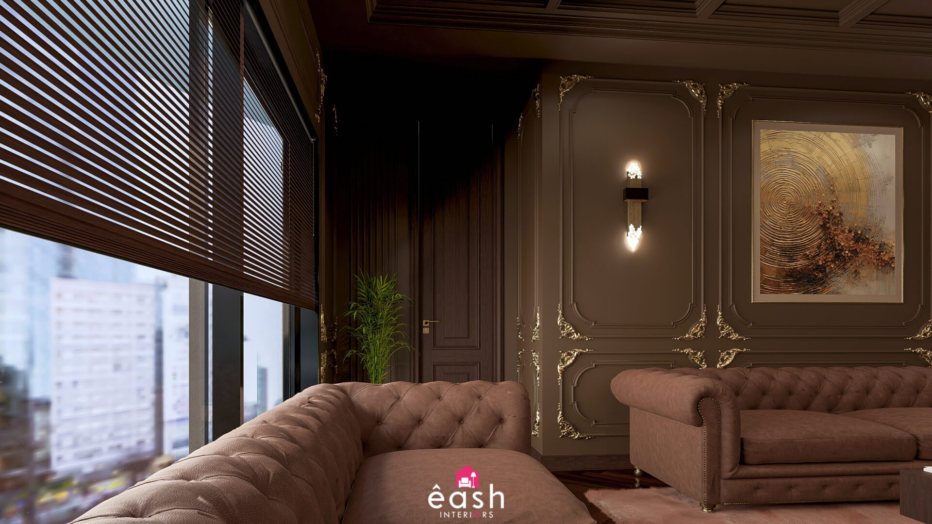 For the executive workspace of Beta Academy, eash Interiors crafted a theme-based classic office design rooted in elegance and authority. A dark brown monochromatic color scheme builds a warm, grounded atmosphere suited for decision-making and professionalism. The design maintains balance, rhythm, and unity, ensuring sophistication across all functional zones.