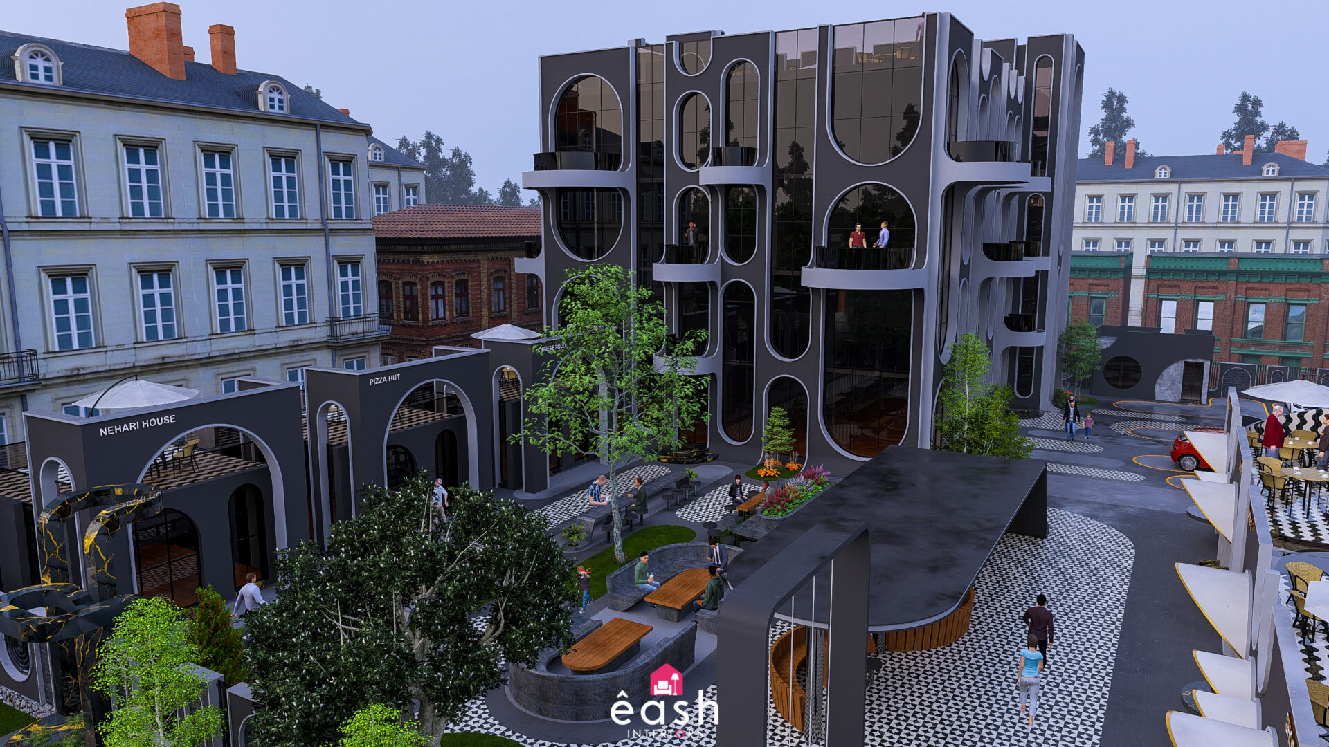 eash Interiors aimed to deliver a multi-functional, theme-based food and leisure destination that caters to both casual diners and overnight guests. The design offers a unified experience of hospitality, recreation, and community engagement — all within a balanced and modern framework.