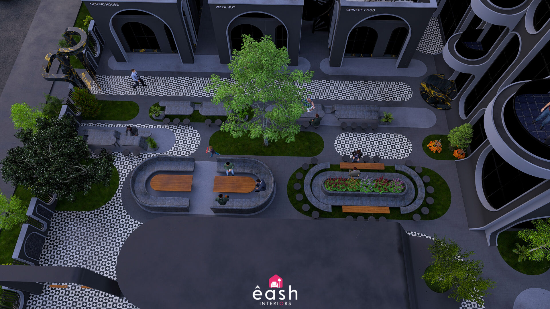 - Comfortable, landscaped seating and small-scale food kiosks enrich the experience, offering community and variety in an open environment.